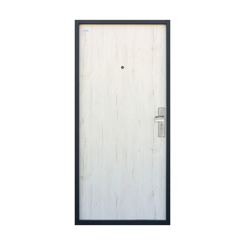 Bezpečnostné dvere z kolekcie SOFIA PLUS so špeciálnou dverovou fóliou s ochrannou laminovanou vrstvou. Zárubňa v odtieni „Šedá – RAL 7031“.